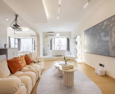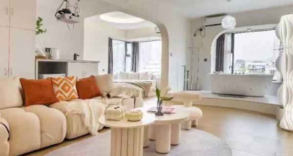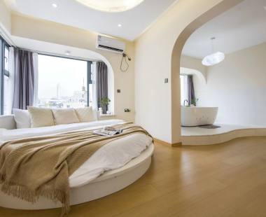 [悦居旅居]ins奶油风/临江落地窗/4k投影